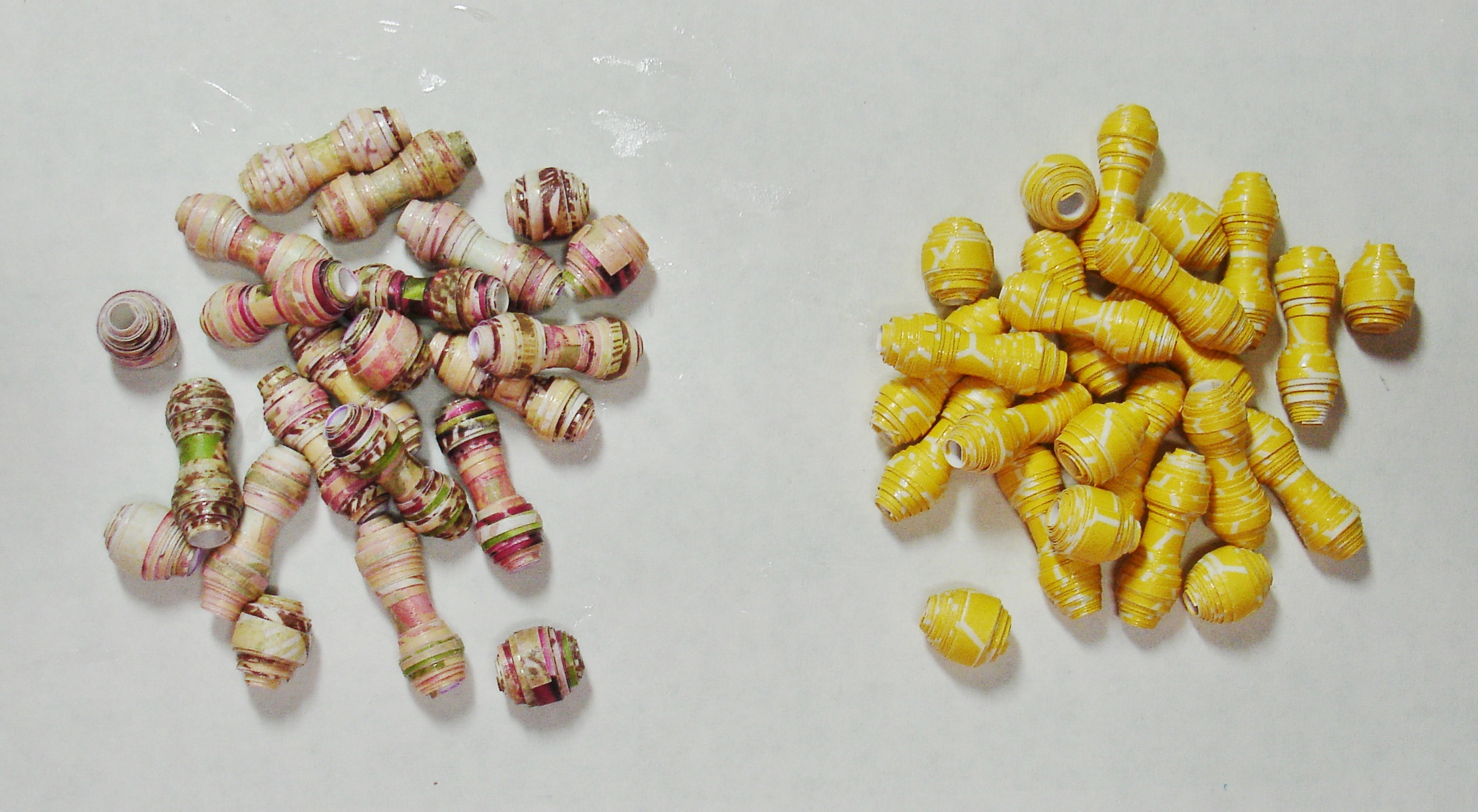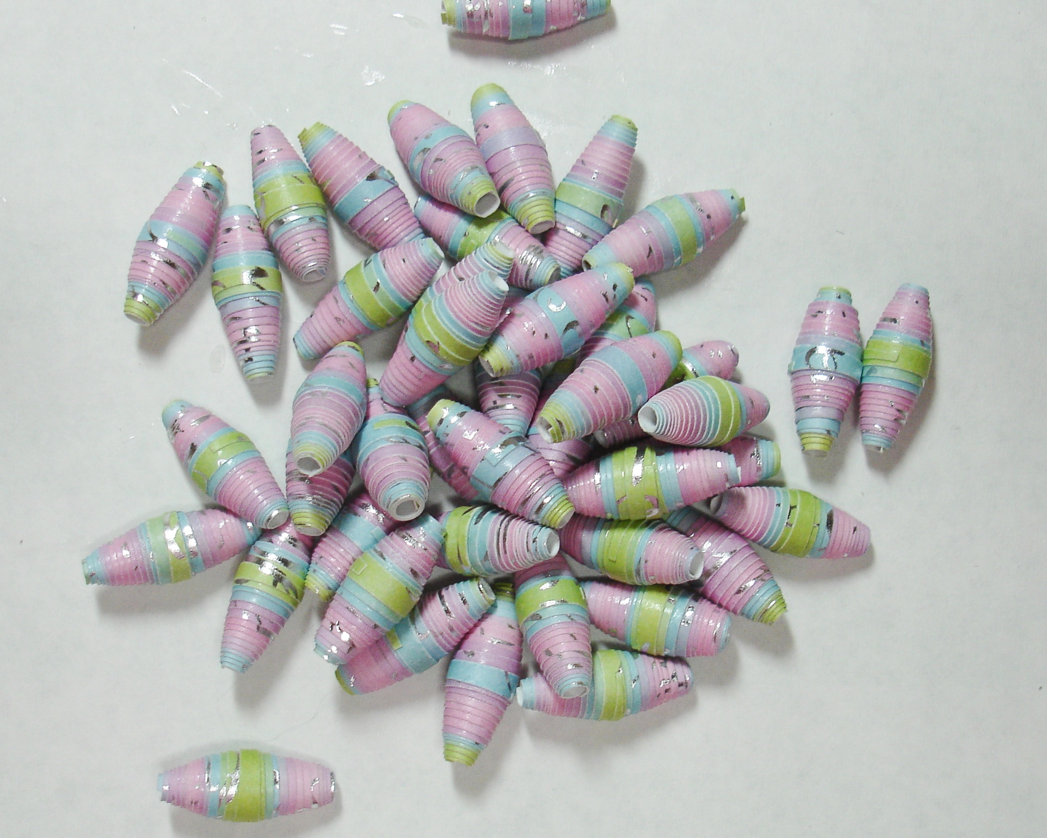 I very rarely show my beads before they are finished…Partly because I feel the shine is what sometimes makes them so pretty! But today is your lucky day! These are the three I will seal today and here they are unfinished! What do you think? As I have shared with you in the past, the double barrel is by far my favorite paper bead shape so that’s no surprise! Be looking for them in my Etsy shop in the next day or two http://www.ThePaperBeadBoutique.etsy.com. The beads on the left have the most beautiful silver metallic running through them! I also have some paper strips cut to do some cone beads today and I will share those with you later on!