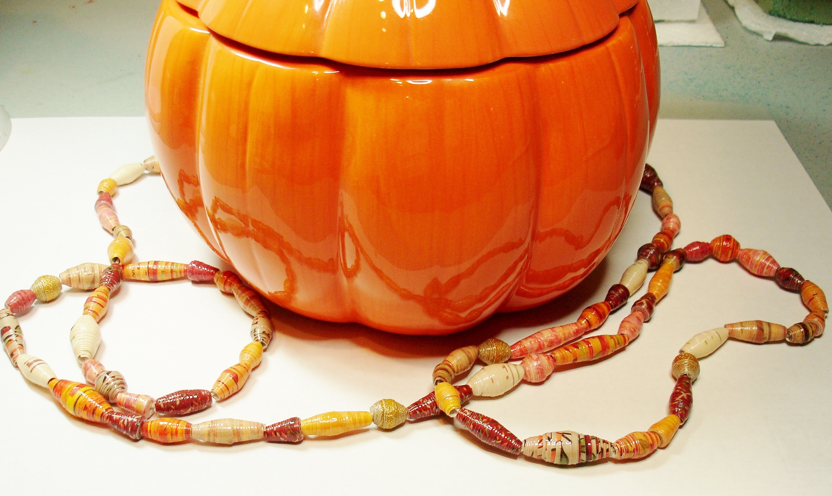 This garland has been a time consuming project but I am finally finished and VERY PROUD of how it turned out!  Would love to hear your thoughts! Do you decorate for the seasons? My decorating passion comes from my 26 years working for Hallmark Cards! We’ve always decorated through the years and this year won’t be any different! And with Fall right around the corner, I Cant Wait to pull out my Fall decorations and add something new this year…Paper Bead Garland! If you like this, you’ll be anxious to see my Christmas paper bead garland coming soon! Stop by ThePaperBeadBoutique.etsy.com to get yours, this weekend!